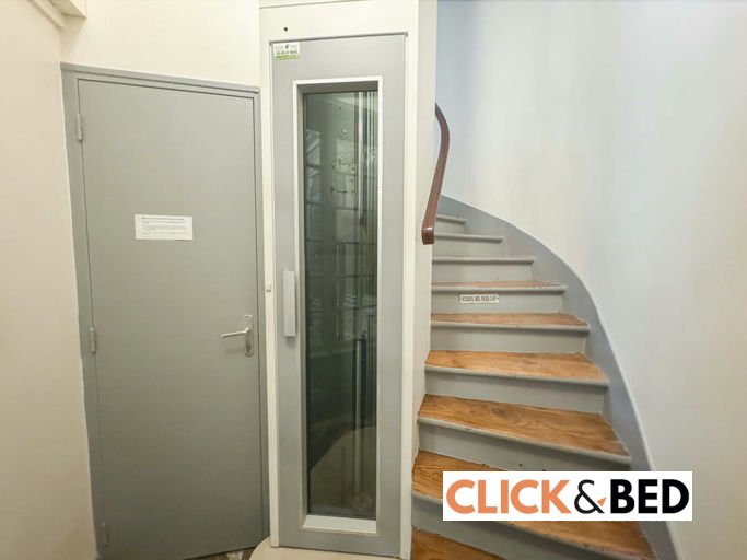 Au 3e étage avec ascenseur d’un charmant immeuble, une belle chambre PRIVATIVE au sein d’un appartement PARTAGÉ de 47m2.